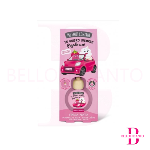 The Fruit Company Ambientador Coche Fresa y Nata transmite tiernos recuerdos durante los trayectos en coche.