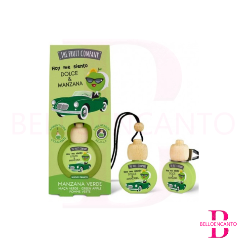 Ambientador para coche con un delicioso aroma a manzana verde. Diseñado para que puedas colocarlo fácilmente en tu coche, contiene un divertido diseño «No pienso madurar»
