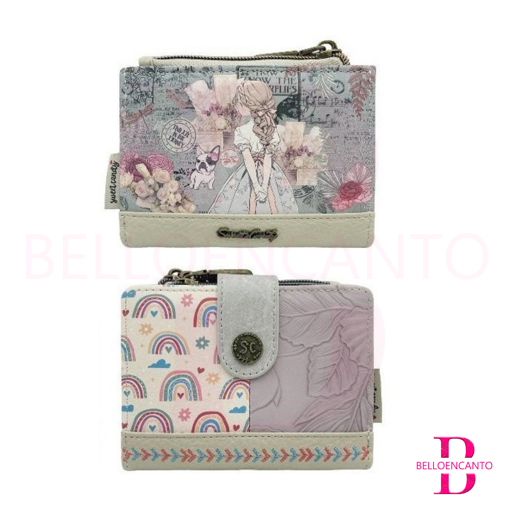 La Cartera Sweet Candy con Solapa es un accesorio de moda de la colección, que se caracteriza por su diseño juvenil, romántico y artístico, a menudo con motivos de mariposas, libélulas, flores, arcoíris o escenas bohemies.