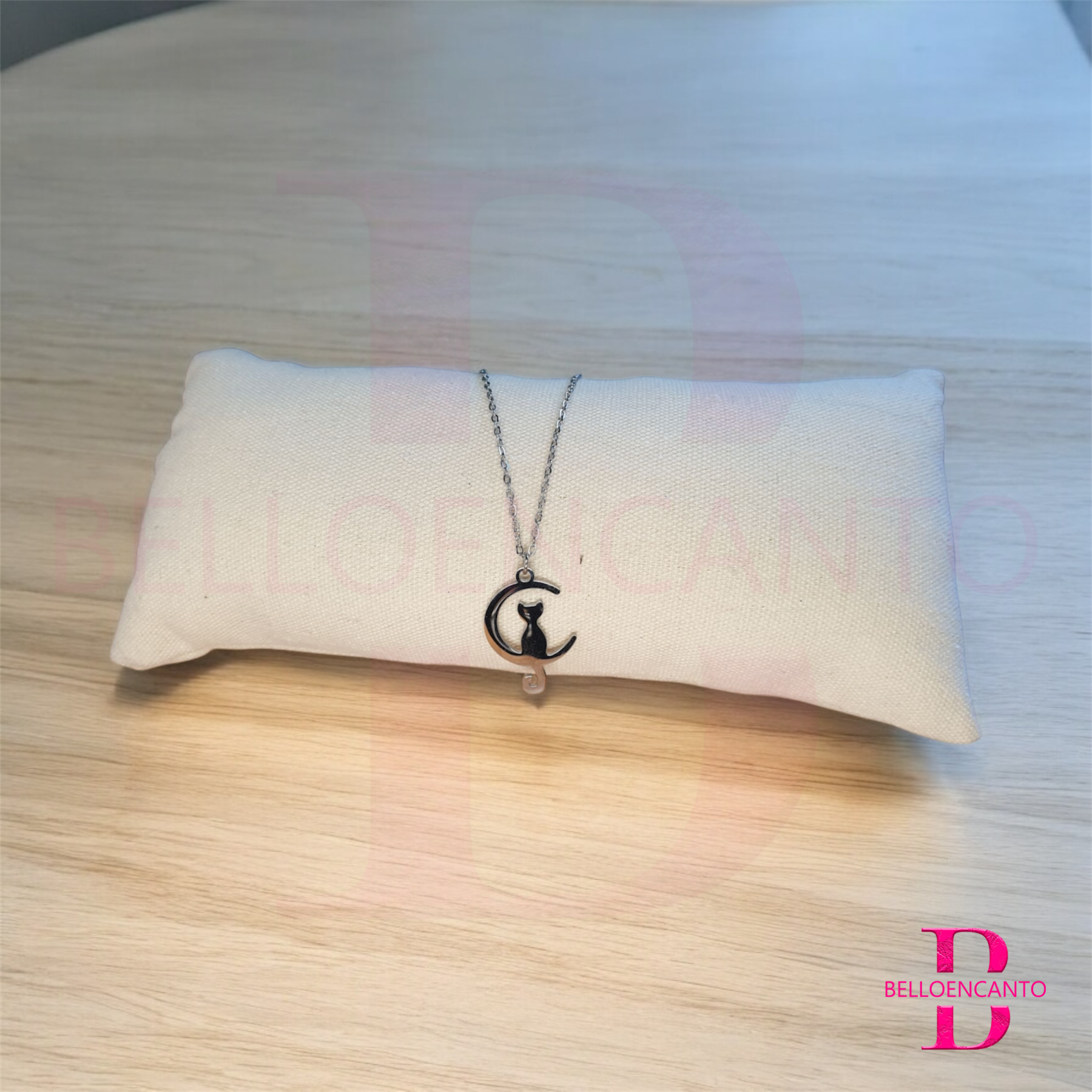 Nuestro Colgante Gato en la Luna es un complemento perfecto para los amantes de los gatos, la noche y creyentes de Brujas.