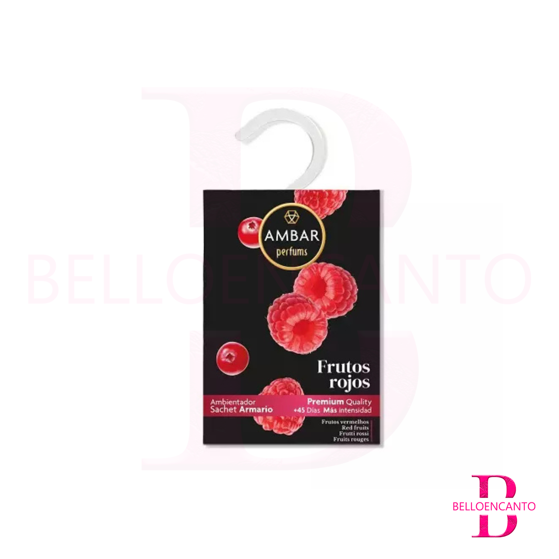 Nuestro sobre perfumado de Frutos Rojos de Ámbar es ideal para pequeños espacios. Cuelga el sobre perfumado en tu armario o vestidor gracias a la pequeña percha. Si lo prefieres, también puedes utilizarlo en cajones o espacios cerrados como una maleta o en tu coche. Este sobre impregnará tu ropa de un aroma dulce y afrutado.